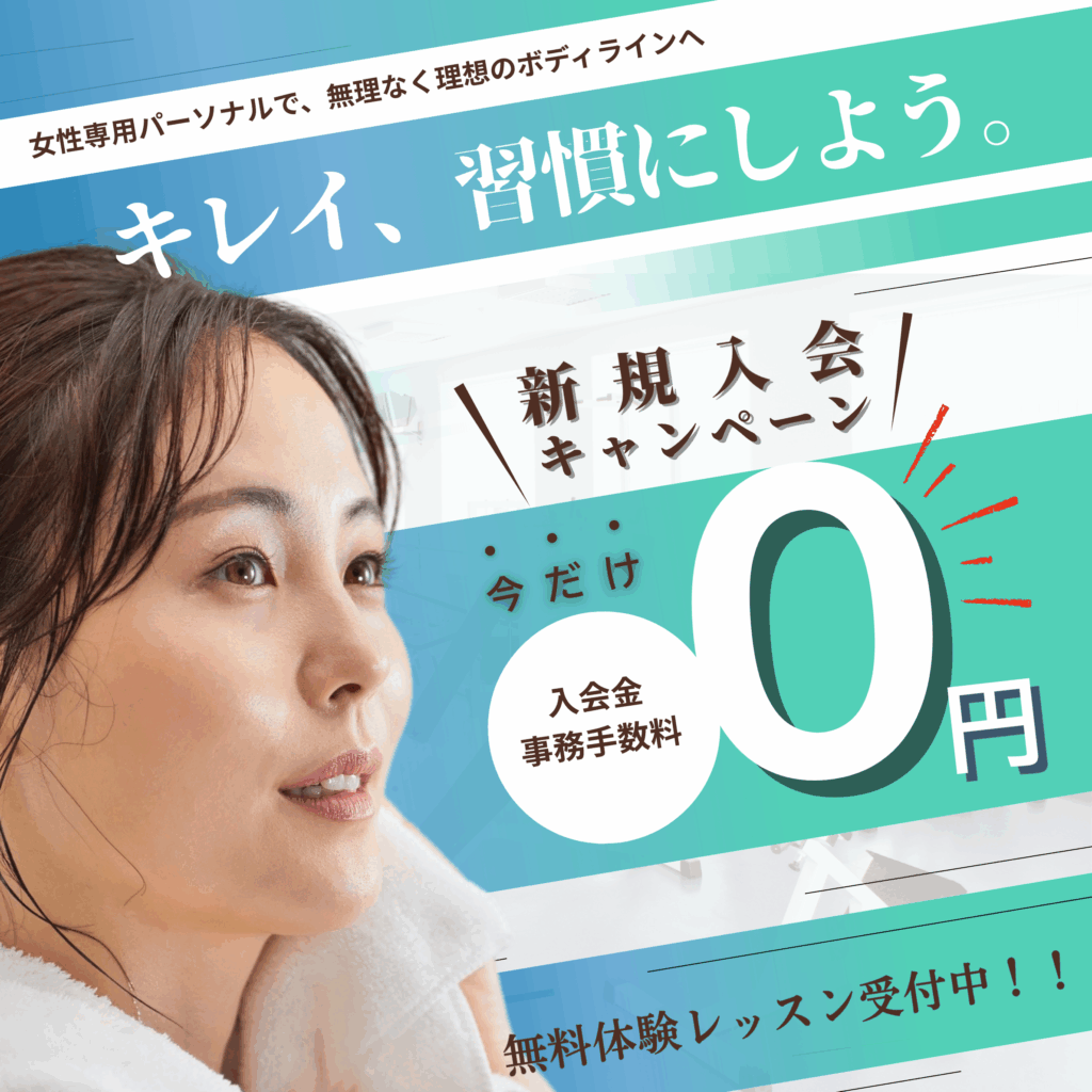 【意識したポイント】特典追求:「入会キャンペーン」「登録料0円」をメインに打ち出し、初期費用のハードルを下げる。クリーンなイメージ: 白を基調とした清潔感のあるデザインで、安心して始められるイメージ。